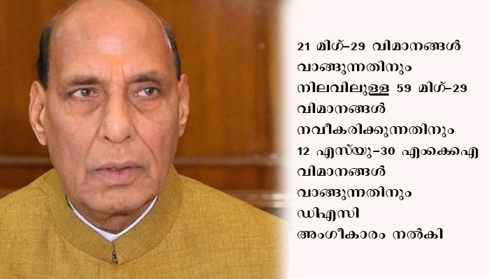 വ്യോമസേനയിൽ യുദ്ധവിമാനങ്ങൾ വർധിപ്പിക്കണമെന്ന ദീർഘകാല ആവശ്യം പരിഗണിച്ചു കൊണ്ട് 21 മിഗ് -29 വിമാനങ്ങൾ വാങ്ങുന്നതിനും നിലവിലുള്ള 59 മിഗ് -29 വിമാനങ്ങൾ നവീകരിക്കുന്നതിനും 12 എസ്യു -30 എംകെഐ വിമാനങ്ങൾ വാങ്ങുന്നതിനും ഡിഎസി അംഗീകാരം നൽകി. റഷ്യയിൽ നിന്നു മിഗ് 29 വാങ്ങുന്നതിനും നവീകരണത്തിനും 7,418 കോടി രൂപ ചെലവാകുമെന്ന് കണക്കാക്കുന്നു. എസ്യു -30 എംകെഐ 10,730 കോടി രൂപ ചെലവിൽ ഹിന്ദുസ്ഥാൻ എയറോനോട്ടിക്സ് ലിമിറ്റഡിൽ (എച്ച്എഎൽ) നിന്ന് വാങ്ങും.