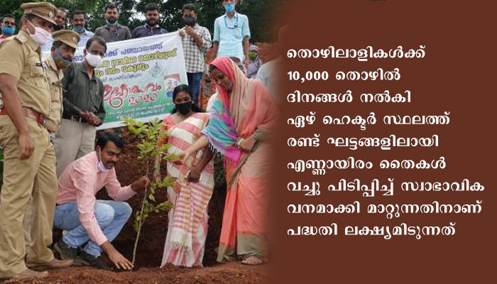 മലപ്പുറം: മഹാത്മാഗാന്ധി ദേശീയ ഗ്രാമീണ തൊഴിലുറപ്പ് പദ്ധതിയും വനം വകുപ്പും സംയുക്തമായി സംഘടിപ്പി ക്കുന്ന വനമഹോത്സത്തിന് അരീക്കോട് ബ്ലോക്കിലെ കര്യാത്തന്പാറ വനഭാഗത്ത് തുടക്കമായി. നിലമ്പൂര് ഡിവിഷനല് ഫോറസ്റ്റ് ഓഫീസര് വര്ക്കഡ് യോഗേഷ് നീലകണ്ഠ് പരിപാടി ഉദ്ഘാടനം ചെയ്തു. അരീക്കോട് ബ്ലോക്ക് പഞ്ചായത്ത് പ്രസിഡന്റ് പറമ്പന് ലക്ഷ്മി അധ്യക്ഷയായി. കീഴുപറമ്പ് ഗ്രാമപഞ്ചായത്ത് പ്രസിഡന്റ് റൈഹാന ബേബി മുഖ്യപ്രഭാഷണം നടത്തി. ജില്ലാ പ്രോഗ്രാ കോര്ഡിനേറ്റര് പി.ജി വിജയകുമാര് പദ്ധതി വിശദീകരിച്ചു. തൊഴിലാളികള്ക്ക് 10,000 തൊഴില് ദിനങ്ങള് നല്കി ഏഴ് ഹെക്ടര് സ്ഥലത്ത് രണ്ട് ഘട്ടങ്ങളിലായി എണ്ണായിരം തൈകള് വച്ചു പിടിപ്പിച്ച് സ്വാഭാവിക വനമാക്കി മാറ്റുന്നതിനാണ് പദ്ധതി ലക്ഷ്യമിടുന്നത്.