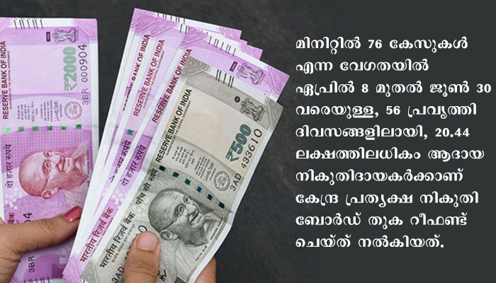 ആദായ നികുതി വകുപ്പ് 62,361 കോടി രൂപ 20 ലക്ഷത്തിലധികം നികുതിദായകര്ക്ക് റീഫണ്ട് ചെയ്തു