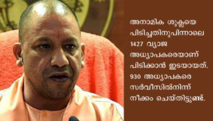 ലഖ്നൗ: ഉത്തര്പ്രദേശിൽ വ്യാജ രേഖകൾ നൽകി അടിസ്ഥാന വിദ്യാഭ്യാസ വകുപ്പിൽ അദ്ധ്യാപകനായി ജോലി ചെയ്യുന്ന 1724 അധ്യാപകരെ പിടികൂടി. ഇവരിൽ നിന്നും ഈടാക്കേണ്ട പിഴയുടെ ആകെത്തുക 900 കോടിയാണ്. ഉത്തർപ്രദേശിലെ എല്ലാ അടിസ്ഥാന വിദ്യാഭ്യാസ അധികാരികളോടും എല്ലാ അധ്യാപകരെ കുറിച്ചുമുള്ള അന്വേഷണ റിപ്പോർട്ട് ജൂലൈ മൂന്നാം തീയതി മുമ്പ് നൽകണമെന്ന് സർക്കാർ ആവശ്യപ്പെട്ടു. പ്രാഥമിക വിദ്യാഭ്യാസ വിഭാഗത്തിലെ എന്നപോലെതന്നെ ഉയർന്ന വിദ്യാഭ്യാസ തലത്തില് പ്രവർത്തിക്കുന്ന അധ്യാപകരെ കുറിച്ചുള്ള വിവരങ്ങള് ശേഖരിക്കുവാനും മുഖ്യമന്ത്രി ആദിത്യനാഥ് ഉത്തരവിട്ടു.