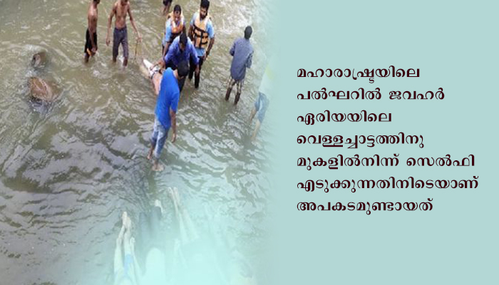 ജവഹറിലെ അംബിക ചൗക്കില്നിന്നുള്ള 13 അംഗ സംഘമാണ് അവിടെനിന്ന് ഏഴുകിലോമീറ്റര് അകലെ കെലിചാപട- കല്ഷെട്ടി പ്രദേശത്തെ കല് മന്ദവി വെള്ളച്ചാട്ടത്തിലേക്ക് പോയത്. സെല്ഫി എടുക്കുന്നതിനിടെ രണ്ടുപേര് അബദ്ധത്തില് വെള്ളത്തില് വീണു. ഇവരെ രക്ഷിക്കുന്നതിനായി മറ്റുള്ളവരും ചാടുകയായിരുന്നുവെന്ന് പൊലീസ് പറഞ്ഞു.