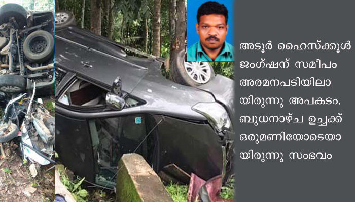 അടുരിൽ നിന്നും പന്തളത്തേയ്ക്ക് പോയ ഇന്നോവ കാർ നിയന്ത്രണം വിട്ട് നിർത്തിയിട്ട മുചക്ര വാഹനത്തിലിടിക്കുകയാണുണ്ടായത്.