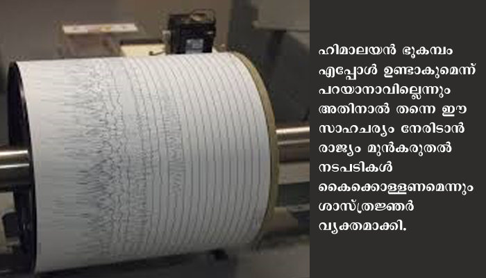 2015ലെ നേപ്പാളില്‍ അനുഭവപ്പെട്ടതാണ് ഹിമാലയത്തിലെ അവസാനത്തെ വലിയ ഭൂചലനമായി റിപ്പോര്‍ട്ട് ചെയ്തിട്ടുള്ളത്. 7.8 തീവ്രതയാണ് ഇതില്‍ രേഖപ്പെടുത്തിയത്. 9000ത്തോളം പേര്‍ മരിക്കുകയും 22,000 പേര്‍ക്ക് പരിക്കേല്‍ക്കുകയും ചെയ്തിരുന്നു. ഹിമാലയന്‍ ഭൂകമ്പം എപ്പോള്‍ ഉണ്ടാകുമെന്ന് പറയാനാവില്ലെന്നും അതിനാല്‍ തന്നെ ഈ സാഹചര്യം നേരിടാന്‍ രാജ്യം മുന്‍കരുതല്‍ നടപടികള്‍ കൈക്കൊള്ളണമെന്നും ശാസ്ത്രജ്ഞര്‍ വ്യക്തമാക്കി. ഉടന്‍ തന്നെ ഭൂചലനം ഉണ്ടായേക്കാമെന്നും ചിലപ്പോള്‍ വര്‍ഷങ്ങള്‍ എടുത്തേക്കാമെന്നും ഭുകമ്പനിരീക്ഷണ ശാസ്ത്രജ്ഞര്‍ പറയുന്നു.