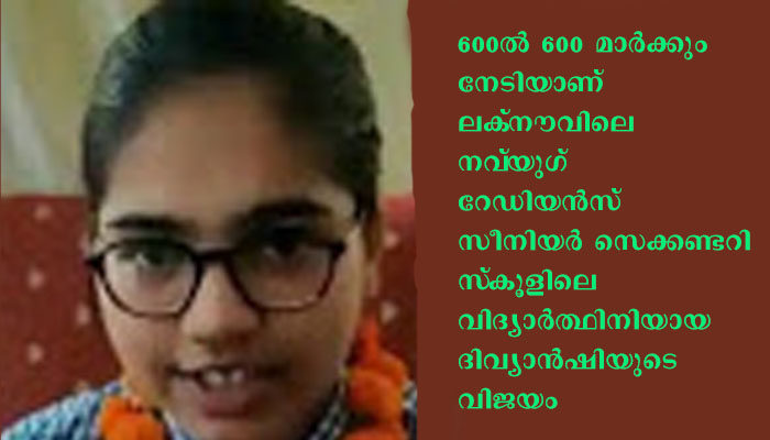 ന്യൂഡല്ഹി: സിബിഎസ്ഇ പന്ത്രാണ്ടാം ക്ലാസ് ഫലം പുറത്ത് വന്നപ്പോള് എല്ലാ വിഷയത്തിലും മുഴുവന് മാര്ക്കും നേടി ലക്നൗവില് നിന്നുള്ള ദിവ്യാന്ഷി ജെയിന് സ്വന്തമാക്കിയത് തിളക്കമാര്ന്ന വിജയം. 600ല് 600 മാര്ക്കും നേടിയാണ് ലക്നൗവിലെ നവ്യുഗ് റേഡിയന്സ് സീനിയര് സെക്കണ്ടറി സ്കൂളിലെ വിദ്യാര്ത്ഥിനിയായ ദിവ്യാന്ഷിയുടെ വിജയം. മുഴുവന് മാര്ക്കും ലഭിച്ചതില് സന്തോഷവും അമ്പരപ്പും അഭിമാനവും തോന്നിയെന്നാണ് ദിവ്യാന്ഷി പ്രതികരിച്ചത്.