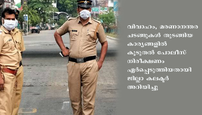 കണ്ണൂര്‍ ജില്ലയില്‍ കൊവിഡ് പ്രതിരോധം; ചടങ്ങുകള്‍ക്ക് കൂടുതല്‍ പോലീസ് നിരീക്ഷണം ഏര്‍പ്പെടുത്തി