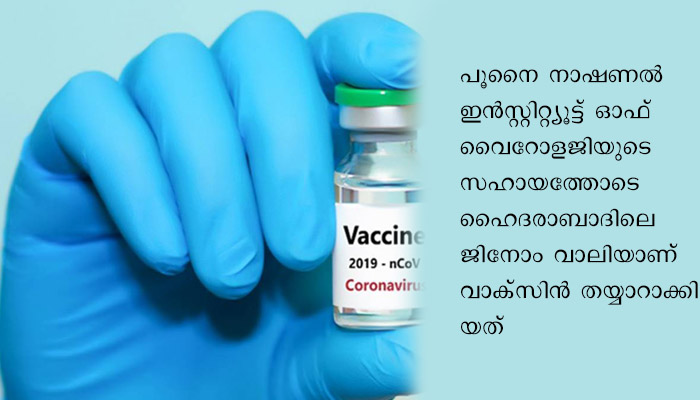 പൂനൈ നാഷണൽ ഇൻസ്റ്റിറ്റ്യൂട്ട് ഓഫ് വൈറോളജിയുടെ സഹായത്തോടെ ഹൈദരാബാദിലെ ജിനോം വാലിയാണ് വാക്സിൻ തയ്യാറാക്കിയത്. ഇന്ത്യയിൽ ഭാരത് ബലയാ ടെക്, സൈഡസ് കാഡില, പാനസിയ ബയോടെക്, ഇന്ത്യൻ ഇമ്യൂണോ ലോജിക്കൽൽസ്, മൈൻ വാക്സ് ആൻഡ് ബയോളജിക്കൽ എന്നിവരും പരീക്ഷണ രംഗത്തുണ്ട്. 130 വാക്സിനുകളാണ് ലോകമെങ്ങും പരീക്ഷണ ഘട്ടത്തിലുള്ളത്.
