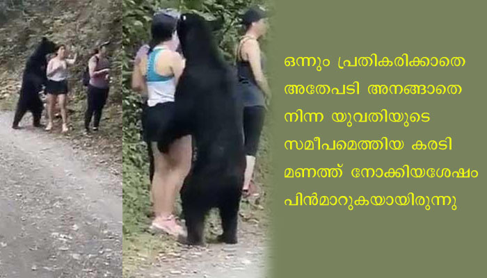 വന്യജീവിയായ കരടിക്കുമുന്നിൽ പതറാറെ യുവതിയുടെ അടവ് നയം വൈറലാകുന്നു