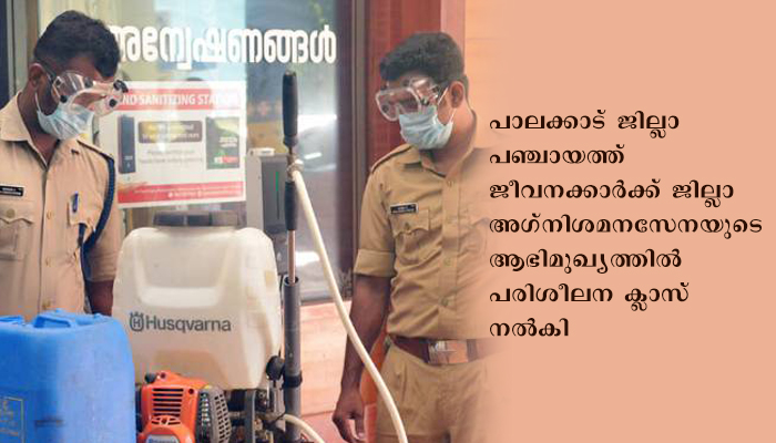 പാലക്കാട്: ജില്ലയിൽ കോവിഡ് രോഗബാധ തുടരുന്ന സാഹചര്യത്തിൽ പാലക്കാട് ജില്ലാ പഞ്ചായത്ത് ജീവനക്കാർക്ക് ജില്ലാ അഗ്നിശമനസേനയുടെ ആഭിമുഖ്യത്തിൽ പരിശീലന ക്ലാസ് നൽകി. ശാരീരിക അകലം പാലിക്കേണ്ട സ്ഥലങ്ങൾ, ശാരീരിക അകലം പാലിക്കേണ്ട വിധം, സാനിറ്റൈസർ ഉപയോഗിക്കേണ്ട രീതി, സുരക്ഷിതമായി മാസ്ക് ഉപയോഗിക്കുന്ന രീതി, സോഡിയം ഹൈപോ ക്ലോറേറ്റ് ഉപയോഗിച്ച് സ്വയം അണുവിമുക്തമാക്കേണ്ട രീതികൾ എന്നിവ സംബന്ധിച്ചാണ് പരിശീലനം നൽകിയത്.