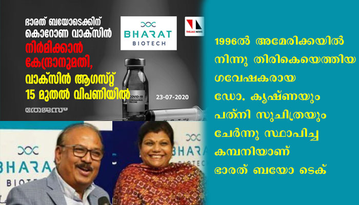 ന്യൂഡല്‍ഹി: ഹൈദരാബാദിലെ ഭാരത് ബയോ ടെക്കിന് കൊവിഡ് വാക്‌സിന്‍ നിര്‍മിക്കാന്‍ കേന്ദ്രം അനുമതി നല്‍കി. ഇതേത്തുടര്‍ന്ന് ഓഗസ്റ്റ് 15 മുതല്‍ വാക്‌സിന്‍ വിപണിയില്‍ ലഭ്യമായിത്തുടങ്ങുമെന്ന കാര്യത്തില്‍ ഏതാണ്ട് ഉറപ്പായി. ഐസിഎംആര്‍ ഡയറക്ടര്‍ ജനറല്‍ ഡോ. ബല്‍റാം ഭാര്‍ഗവ ഓഗസ്റ്റ് 15ന് വാക്‌സിന്‍ തയ്യാറാവുമെന്ന് ഈമാസം ആദ്യം അറിയിച്ചിരുന്നു. കുറഞ്ഞവിലയില്‍ ഇന്ത്യയില്‍ വാക്‌സിന്‍ നിര്‍മിക്കുന്നതില്‍ പ്രസിദ്ധമായ കമ്പനിയാണ് ഭാരത് ബയോ ടെക്. 1996ല്‍ അമേരിക്കയില്‍നിന്നു തിരികെയെത്തിയ ഗവേഷകരായ ഡോ. കൃഷ്ണയും പത്‌നി സുചിത്രയും ചേര്‍ന്നു സ്ഥാപിച്ച കമ്പനിയാണ് ഭാരത് ബയോ ടെക്.