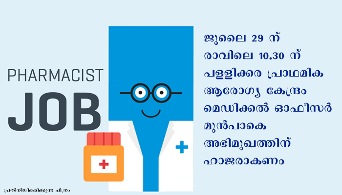 കാസർകോഡ് പളളിക്കര പ്രാഥമികാരോഗ്യ കേന്ദ്രത്തില്‍ ഫാര്‍മസിസ്റ്റ് നിയമനം