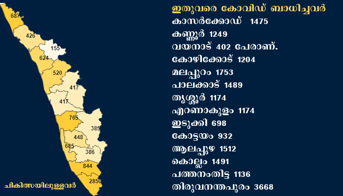 കാസര്ക്കോഡ് ഇതുവരെ കോവിഡ് ബാധിച്ചവര് 1475 പേരാണ്. 784 പേര് രോഗവിമുക്തരായി. 687പേര് ചികിത്സയിലാണ്. 4 മരണമാണ് ഈ ജില്ലയില് ഉണ്ടായിരിക്കുന്നത്.