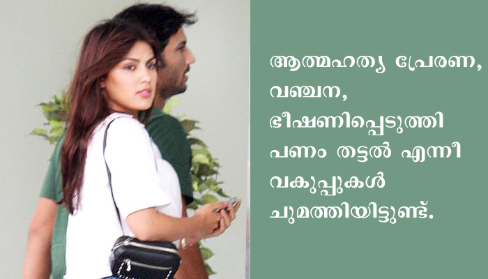 പട്ന : ബോളിവുഡ് താരം സുശാന്ത് സിംഗ് രാജ്പുതിന്റെ മരണവുമായി ബന്ധപ്പെട്ട് നടി റിയ ചക്രബര്ത്തിക്കെതിരെ സുശാന്തിന്റെ പിതാവ് പരാതി നല്കി. സുശാന്തിന്റെ മരണത്തില് പ്രേരണാക്കുറ്റം ആരോപിച്ചാണ് പിതാവ് കെ.കെ സിംഗ് പാട്ന സെന്ട്രല് സോണ് ഐ.ജി സഞ്ജയ് സിംഗിന് പരാതി നല്കിയത്. ആത്മഹത്യാ പ്രേരണ ഉള്പ്പെടെ വിവിധ വകുപ്പുകള് പ്രകാരം നടിക്കെതിരെ കേസെടുത്തു. സുശാന്തിനെ റിയ ജീവനൊടുക്കാന് പ്രേരിപ്പിച്ചുവെന്നും സാമ്പത്തികമായി വഞ്ചിച്ചുവെന്നും മാനസികമായി ഉപദ്രവിച്ചെന്നും പരാതിയില് പറയുന്നു. എഫ്ഐആറില് റിയയുടെ മാതാപിതാക്കള്ക്കുള്പ്പെടെ ആറ് പേരുടെ പേരും ചേര്ത്തിട്ടുണ്ട്. ആത്മഹത്യ പ്രേരണ, വഞ്ചന, ഭീഷണിപ്പെടുത്തി പണം തട്ടല് എന്നീ വകുപ്പുകള് ചുമത്തിയിട്ടുണ്ട്.