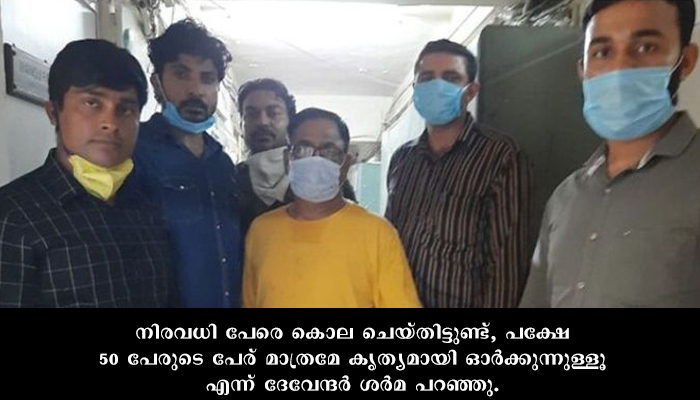 ഉത്തർപ്രദേശിലെ അലിഗഡ് സ്വദേശിയാണ് ദേവേന്ദർ ശർമ . ഗ്യാസ് ഏജൻസി തട്ടിപ്പ്, കിഡ്നി വ്യാപാരം, കൊലപാതകം, തട്ടിക്കൊണ്ടുപോകൽ തുടങ്ങിയ നിരവധി കേസുകളാണ് ഇയാൾക്കെതിരെ ഉള്ളത്. 2008 മുതൽ 2004 വരെ നിരവധി കൊലപാതക കേസിൽ അറസ്റ്റ് ചെയ്തിട്ടുണ്ട് എങ്കിലും ആറു കേസുകളിൽ മാത്രമാണ് കുറ്റം തെളിയിക്കാനായത്. നിരവധി പേരെ കൊല ചെയ്തിട്ടുണ്ടെന്ന് അയാൾ കുറ്റം സമ്മതിച്ചിട്ടുണ്ട്. പക്ഷേ 50 പേരുടെ പേര് മാത്രമേ കൃത്യമായി ഓർക്കുന്നുള്ളൂ എന്നും അയാൾ പറഞ്ഞു.