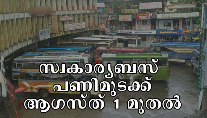 കൊച്ചി: ശനിയാഴ്ച മുതല് സ്വകാര്യബസുകള് സര്വീസ് നിര്ത്തിവയ്ക്കും. 9000ഓളം ബസുകളാണ് അനിശ്ചിതകാലത്തേക്ക് നിരത്തില്നിന്ന് ഒഴിയുന്നതായി കാണിച്ച് സര്ക്കാരിന് ജിഫോം നല്കിയത്. ശരാശരി 25,000 രൂപ കലക്ഷന് ഉണ്ടായിരുന്ന ഒരു ബസിന് യാത്രക്കാരുടെ കുറവും ഇന്ധനച്ചെലവും കാരണം ഇപ്പോള് 3000 രൂപയോളം പ്രതിദിന നഷ്ടമാണ്. ഈ രീതിയില് പിടിച്ചുനില്ക്കാനാവാത്തതുകൊണ്ടാണ് ബസുകള് സര്വീസ് നിര്ത്തുന്നത്.