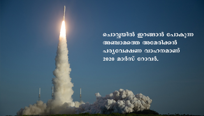 ചൊവ്വയില്‍ ഇറങ്ങാന്‍ പോകുന്ന അഞ്ചാമത്തെ അമേരിക്കന്‍ പര്യവേക്ഷണ വാഹനമാണ് 2020 മാര്‍സ് റോവര്‍. 23 ക്യാമറകളാണ് മാര്‍സ് റോവറിനുള്ളത്. ലേസര്‍ സാങ്കേതികവിദ്യ ഉപയോഗിച്ച് ചൊവ്വയുടെ പ്രതലത്തില്‍ രാസപരിശോധന നടത്തും. മുന്‍ പര്യവേക്ഷണ വാഹനമായ ക്യൂരിയോസിറ്റിക്ക് ഉള്ളതുപോലെ ആറ് ചക്രങ്ങളാണ് മാര്‍സ് റോവറിനുമുള്ളത്. ചൊവ്വയുടെ പ്രതലത്തില്‍ ബുദ്ധിമുട്ട് കൂടാതെ സഞ്ചരിക്കുന്നതിനാണിത്. 2004ല്‍ ചൊവ്വയിലിറങ്ങിയ സ്പിരിറ്റ് ഓഫ് ഓപ്പര്‍ച്യൂണിറ്റി വെള്ളമൊഴുകിയ അടയാളങ്ങള്‍ കണ്ടെത്തിയിരുന്നു.
