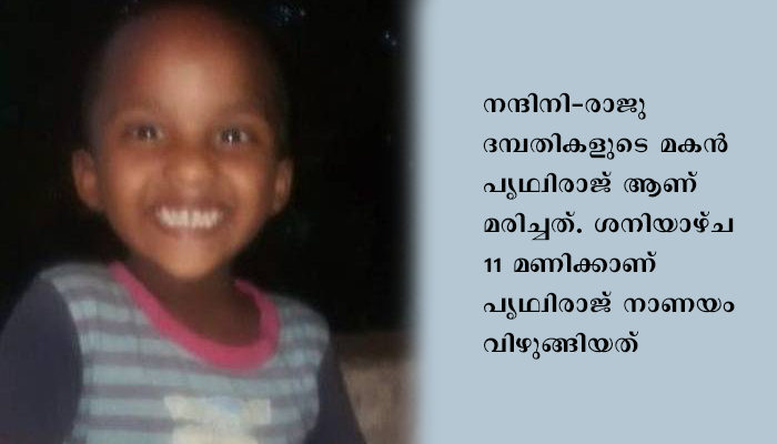 കൊച്ചി: ആലുവ കടുങ്ങല്ലൂരില് നാണയം വിഴുങ്ങിയ മൂന്നുവയസ്സുകാരന് മരിച്ചു. നന്ദിനി- രാജു ദമ്പതികളുടെ മകന് പൃഥ്വിരാജ് ആണ് മരിച്ചത്. ശനിയാഴ്ച 11 മണിക്കാണ് പൃഥ്വിരാജ് നാണയം വിഴുങ്ങിയത്. കുട്ടി വല്യമ്മയോട് താന് നാണയം വിഴുങ്ങിയെന്ന് പറയുകയായിരുന്നു. ഉടന് ഓട്ടോറിക്ഷ വിളിച്ച് ആലുവ ജില്ലാ ആശുപത്രിയിലെത്തിച്ചു. അവിടെ എക്സ്- റേ എടുത്തുനോക്കി. നാണയം ആമാശത്തിലാണ് കിടക്കുന്നതെന്നും ശ്വാസതടസമില്ലാത്തതിനാല് പേടിക്കേണ്ടെന്നും ചോറും പഴവും കഴിച്ചാല് നാണയം പുറത്തുവരുമെന്നും പറഞ്ഞതിന്റെ അടിസ്ഥാനത്തില് അവിടെനിന്ന് ഇറങ്ങി.