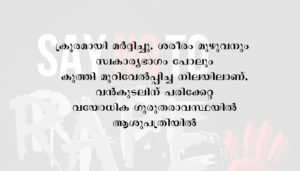 കോലഞ്ചേരി: പാങ്കോട്ടില് തിങ്കളാഴ്ച, 03-08-2020 രാത്രി എറണാകുളം കോലഞ്ചേരിയിൽ (75) കാരിയെ ക്രൂരമായി മൂന്നംഗ സംഘം ബലാൽസംഗം ചെയ്തു. മൂന്ന് പേരും ഇതരസംസ്ഥാനതൊഴിലാളികളാണ്. മൂന്നുപേരും പോലീസിന്റെ പിടിയിലായി. തനിച്ചുതാമസിക്കുന്ന ഈ സ്ത്രീയെ ബലം പ്രയോഗിച്ച് ലൈംഗികമായി പീഡിപ്പിച്ചു. ക്രൂരമായി മർദ്ദിച്ചതായി പോലീസ് പറയുന്നു. ശരീരം മുഴുവൻ കത്തി ഉപയോഗിച്ച് മാരകമായി കുത്തി മുറിവേൽപ്പിച്ചിട്ടുണ്ട്. സ്വകാര്യഭാഗം പോലും കുത്തി മുറിവേൽപ്പിച്ച നിലയിലാണ്. സ്വകാര്യഭാഗങ്ങളിലടക്കം ശരീരത്തില് പലയിടങ്ങളിലും സിഗററ്റു വച്ച് പൊള്ളിച്ച പാടുകളുമുണ്ട്. വന്കുടലിന് പരിക്കേറ്റ വയോധിക ഗുരുതരാവസ്ഥയിൽ ആശുപത്രിയിൽ തുടരുകയാണ്. അടിയന്തര ശസ്ത്രക്രിയയ്ക്ക് വിധേയമാക്കി. പ്രതികള് മദ്യലഹരിയിലായിരുന്നുവെന്ന് പോലീസ് റിപ്പോർട്ട്.
