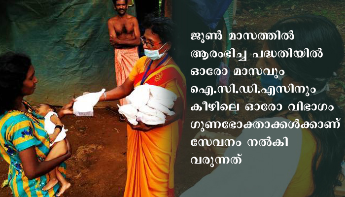 ജൂണ് മാസത്തില് ആരംഭിച്ച പദ്ധതിയില് ഓരോ മാസവും ഐ.സി.ഡി.എസിനും കീഴിലെ ഓരോ വിഭാഗം ഗുണഭോക്താക്കള്ക്കാണ് സേവനം നല്കി വരുന്നതെന്ന് പത്തനംതിട്ട ജില്ലാ ഐ.സി.ഡി.എസ് പ്രോഗ്രാം ഓഫീസര് നിഷ നായര് പറഞ്ഞു. ജൂണ് മാസത്തില് പദ്ധതിയുടെ ഭാഗമായ സാമൂഹിക അധിഷ്ഠിത പരിപാടിയായ ദമ്പതി സംഗമം പരിപാടിയിലൂടെ നവ ദമ്പതികള്ക്ക് ആവശ്യമായ കൗണ്സിലിങ്ങും നിര്ദേശങ്ങളും നല്കി. ജൂലൈയില് ഗര്ഭിണികളെ വീഡിയോ കോള് മുഖേന ബന്ധപ്പെടുകയും അവരുടെ ആരോഗ്യവിവരങ്ങള് അറിയുകയും ആവശ്യമായ സേവനങ്ങളും നിര്ദ്ദേശങ്ങളും ക്ലാസുകളും നല്കുകയും ചെയ്തു.
