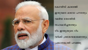 കോവിഡ് കാലത്ത് ഇതുവരെ ഓരോ പൗരനും വലിയ തോതില് സഹകരിച്ചതായും ടീം ഇന്ത്യയുടെ ടീം വര്ക്ക് ശ്രദ്ധേയമാണെന്നും പ്രധാനമന്ത്രി പറഞ്ഞു.