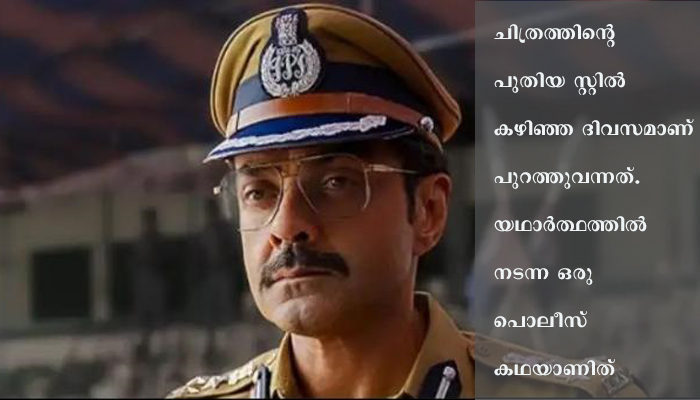 ചിത്രത്തിന്റെ പുതിയ സ്റ്റിൽ കഴിഞ്ഞ ദിവസമാണ് പുറത്തുവന്നത്. യഥാർത്ഥത്തിൽ നടന്ന ഒരു പൊലീസ് കഥയാണിത്.