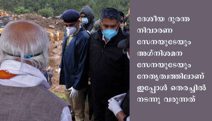 ദേശീയ ദുരന്ത നിവാരണ സേനയുടേയും അഗ്നിശമന സേനയുടേയും നേതൃത്വത്തിലാണ്‌ ഇപ്പോള്‍ തെരച്ചില്‍ നടന്നു വരുന്നത്‌. ലയങ്ങള്‍ ഇരുന്ന സ്ഥലത്തുനിന്നും 4 കിലോമീറ്റര്‍ ദൂരെയുളള ഗ്രാവല്‍ ബാങ്ക്‌ മേഖലയിലാണ് പ്രധാനമായും തെരച്ചില്‍ നടക്കുന്നത്‌. ലയങ്ങള്‍ സ്ഥിതി ചെയ്‌തിരുന്ന സ്ഥലത്തെ തിരച്ചില്‍ തല്‍ക്കാലം അവസാനിപ്പിച്ചിരിക്കുകയാണ്.