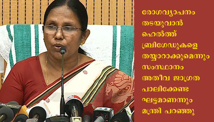 രോഗവ്യാപനം തടയുവാൻ ഹെൽത്ത് ബ്രിഗേഡുകളെ തയ്യാറാക്കുമെന്നും സംസ്ഥാനം അതീവ ജാഗ്രത പാലിക്കേണ്ട ഘട്ടമാണന്നും മന്ത്രി പറഞ്ഞു. വിദേശത്തു നിന്നടക്കമുള്ള ആളുകൾ കൂട്ടത്തോടെ എത്തിയതിന് ശേഷമാണ് ഘട്ടം ഘട്ടമായി സംസ്ഥാനത്ത് കോവിഡ് രോഗികളുടെ എണ്ണത്തിൽ ഭയാനകമായ വർദ്ധനവ് ഉണ്ടായത്. നിലവിൽ ആയിരത്തിന് മുകളിലുള്ള എണ്ണമാണ് റിപ്പോർട്ട് ചെയ്യുന്നത്.