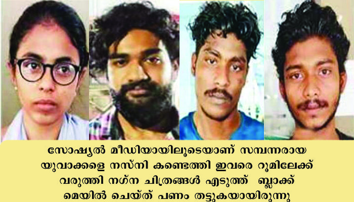 ഹണിട്രാപ്പ് 21 കാരി പെണ്‍കുട്ടിയടക്കം നാലുപേര്‍ പോലീസ് പിടിയില്‍