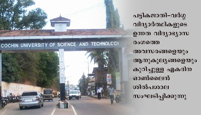 ‘പട്ടികജാതി-വര്ഗ്ഗ വിദ്യാര്ത്ഥികളുടെ ഉന്നത വിദ്യാഭ്യാസ രംഗത്തെ സാധ്യതകള്’ കുസാറ്റില് ഓണ്ലൈന് ശില്പശാല