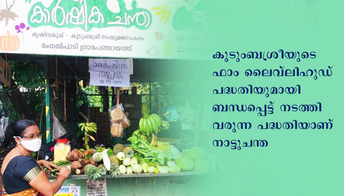 കുടുംബശ്രീയുടെ ഫാം ലൈവ്ലിഹുഡ് പദ്ധതിയുമായി ബന്ധപ്പെട്ട് നടത്തിവരുന്ന പദ്ധതിയാണ് നാട്ടുചന്ത. കുടുംബശ്രീയുടെ സംഘകൃഷി കൂട്ടങ്ങള് ഉല്പാദിപ്പിക്കുന്ന കാര്ഷിക ഉല്പ്പന്നങ്ങള്ക്ക് വിപണി കണ്ടെത്തുക, അതോടൊപ്പം തന്നെ വിഷരഹിതമായ പച്ചക്കറികള് ഉപഭോക്താക്കള്ക്ക് ലഭ്യമാക്കുക എന്ന ലക്ഷ്യത്തോടുകൂടി നടത്തിയ പദ്ധതിയാണ് നാട്ടു ചന്തകള്. വര്ഷങ്ങളായി നടന്നുവരുന്ന കുടുംബശ്രീയുടെ ഈ പദ്ധതിക്ക് മികച്ച ജന പിന്തുണയാണ് നാളിതുവരെ ലഭിച്ചു വരുന്നത്. ജില്ലയിലെ 42 സിഡിഎസുകള് കേന്ദ്രീകരിച്ച് കാര്ഷിക ഉല്പ്പന്നങ്ങള് വില്ക്കുകയാണ് പദ്ധതിയിലൂടെ ചെയ്യുന്നത്. ഓരോ സിഡിഎസ് അല്ലെങ്കില് പഞ്ചായത്ത് കേന്ദ്രീകരിച്ച് അവിടെ ഉല്പാദിപ്പിക്കുന്ന കാര്ഷിക ഉല്പന്നങ്ങള് അവിടെ തന്നെ കമ്മ്യൂണിറ്റി ഡെവലപ്മെന്റ് സൊസൈറ്റി യുടെ നേതൃത്വത്തില് ചന്തകള് സംഘടിപ്പിച്ച് വില്പന നടത്തുന്നു. ഇതിലൂടെ കര്ഷകര്ക്ക് ന്യായമായ വിലയും ഉല്പ്പന്നങ്ങള്ക്ക് മികച്ച് വിപണിയും ലഭിക്കുന്നു. കൂടാതെ ഓരോ നാട്ടു ചന്തയിലും രണ്ട് പേര്ക്ക് വീതം ജോലി നല്കാനായി സാധിക്കുന്നു.