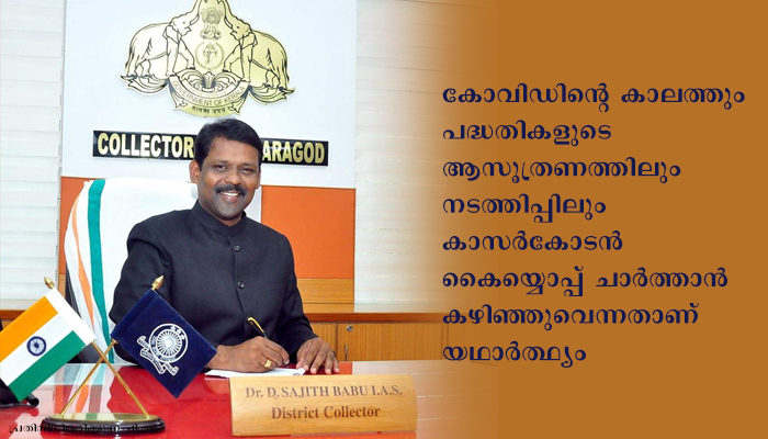 കോവിഡ് സ്ഥിരീകരിച്ചവരെ സ്വഭവനങ്ങളില് തന്നെ ചികിത്സിക്കുന്ന ആരോഗ്യവകുപ്പിന്റെ പദ്ധതിയും കാസര്കോട് ജില്ല ഭരണസംവിധാനമാണ് ആദ്യമായി ഏറ്റെടുത്ത് നടപ്പിലാക്കി വരുന്നത്.ഇങ്ങനെ 150 ലേറെ രോഗികളാണ് വീടുകളില് തന്നെ ജില്ലയില് ചികിത്സയിലുള്ളത് . ഇത്തരത്തില് ജില്ലയില് വേറിട്ട മാതൃകാ പ്രവര്ത്തികള് നടപ്പാക്കുന്നതിന് ജില്ലാകളക്ടര് ഡോ ഡി സജിത് ബാബുവാണ് നേതൃത്വം നല്കിയത്. കോവിഡിന്റെ കാലത്തും പദ്ധതികളുടെ ആസൂത്രണത്തിലും നടത്തിപ്പിലും കാസര്കോടന് കൈയ്യൊപ്പ് ചാര്ത്താന് കഴിഞ്ഞുവെന്നതാണ് യഥാര്ത്ഥ്യം.