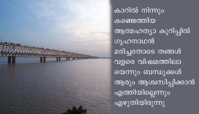 2020 ആഗസ്റ്റ്16 നാണ് ഗൃഹനാഥന് കോവിഡ് ബാധിച്ച് മരണപ്പെട്ടത്. മൂന്ന് ദിവസങ്ങള് ക്കുശേഷം കാറിലെത്തിയ ഭാര്യയും മക്കളുുംനദിയിലേക്ക് ചാടുകയായിരുന്നുവെന്ന് പോലീസ് പറയുന്നു. കാറില് നിന്നും കണ്ടെത്തിയ ആത്മഹത്യാ കുറിപ്പില് ഗൃഹനാഥന് മരിച്ചതോടെ തങ്ങള് വളരെ വിഷമത്തിലായെന്നും ബന്ധുക്കള് ആരും ആശ്വസിപ്പിക്കാന് എത്തിയില്ലെന്നുംഎഴുതിയിരുന്നു. മൃതദേഹങ്ങള് ഇതു വരെ ലഭിച്ചിട്ടില്ല