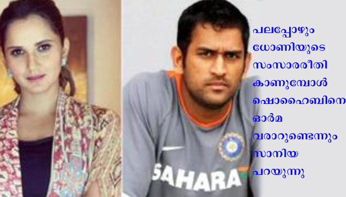 ന്യൂഡൽഹി: പാക്കിസ്ഥാൻ ക്രിക്കറ്റ് താരവും സ്വന്തം ഭർത്താവുമായ ഷുഹൈബ് മാലിക്കും മുൻ ഇന്ത്യൻ ക്യാപ്റ്റൻ മഹേന്ദ്ര സിംഗ് ധോണിയും തമ്മിലുള്ള സാമ്യതകൾ എണ്ണിപ്പറഞ്ഞ് ടെന്നീസ് താരം സാനിയ മിർസ.