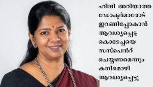 ഹിന്ദി അറിയാത്ത ഡോക്ടര്മാരോട് ഇറങ്ങിപ്പോകാന് ആവശ്യപ്പെട്ട കൊടേച്ചയെ സസ്പെന്റ് ചെയ്യണമെന്നും കനിമൊഴി ആവശ്യപ്പെട്ടു