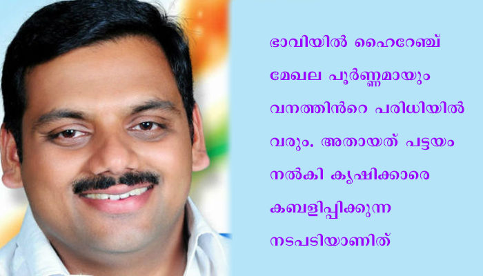 മുന് കരട് വിജ്ഞാപനത്തില് ബൗണ്ടറി 100 മീറ്ററായിരുന്നെങ്കില് ഇപ്പോള് 450 മീറ്റര് മുതല് 1 കിലോമീറ്റര് വരെ ബൗണ്ടറിയാണ് നിശ്ചയിച്ചിരിക്കുന്നത്. ഇത് ആരുമായും ആലോചിക്കുകപോലും ചെയ്യാതെ ഏകപക്ഷീയമായിട്ടാണ് ചെയ്തിരിക്കുന്നത്. ഇപ്പോഴത്തെ വിവരം അനുസരിച്ച് ഇത്തരത്തില് ബഫര് സോണ് നിശ്ചയിച്ചാല് കട്ടപ്പന നഗരസഭ തന്നെ പൂര്ണ്ണമായും, കുമളി നെടുംകണ്ടം ഉടുമ്പന്ചോല തുടങ്ങിയ പഞ്ചായത്തുകളും പരിസ്ഥിതി ലോല മേഖലയില് വരും. അതായത് ഭാവിയില് ഹൈറേഞ്ച് മേഖല പൂര്ണ്ണമായും വനത്തിന്റെ പരിധിയില് വരും. അതായത് പട്ടയം നല്കി കൃഷിക്കാരെ കബളിപ്പിക്കുന്ന നടപടിയാണിത് .