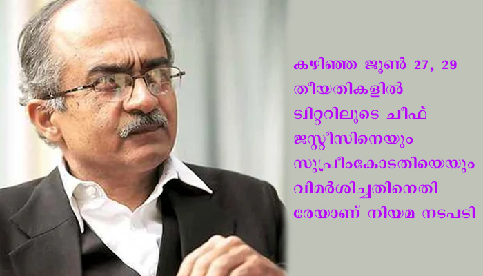 കഴിഞ്ഞ ജൂണ് 27, 29 തീയതികളിൽ ട്വിറ്ററിലൂടെ ചീഫ് ജസ്റ്റീസിനെയും സുപ്രീംകോടതിയെയും വിമർശിച്ചതിനെതിരേയാണ് നിയമ നടപടി.