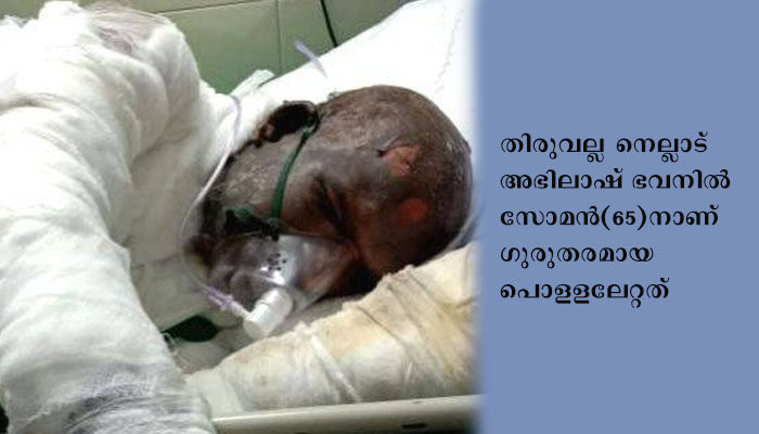 തിരുവല്ല: ഉറങ്ങി കിടക്കുകയായിരുന്ന ഭര്ത്താവിന്റെ ശരീരത്തില് മണ്ണെണ്ണ ഒഴിച്ച് തീ കൊളുത്തിയ കേസില് ഭാര്യക്കെതിരെ കേസ്. തിരുവല്ല നെല്ലാട് അഭിലാഷ് ഭവനില് സോമന്(65)നാണ് ഗുരുതരമായ പൊളളലേറ്റത്. സംഭവത്തില് ഭാര്യ രാധാമണിക്കെതിരെ പോലീസ് കേസെടുത്തു.