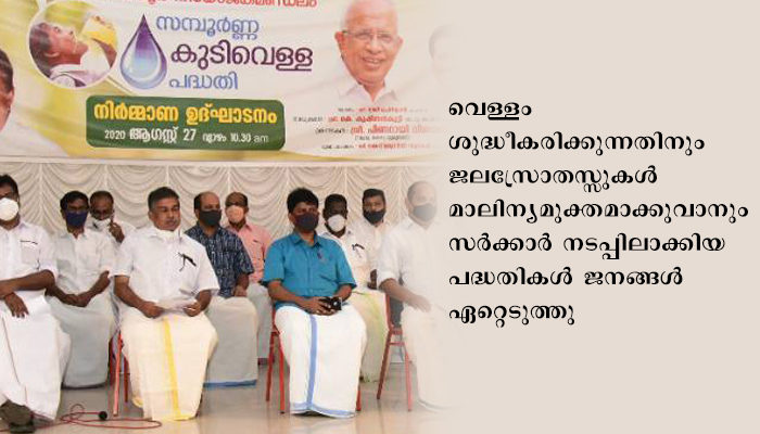 കോവിഡ് ഭീഷണി നേരിടുന്ന കാലത്തും കേരളത്തില് സംസ്ഥാന സര്ക്കാര് ജനങ്ങളുടെ അടിസ്ഥാന ആവശ്യങ്ങള് പരിഹരിക്കാന് മുന്നോട്ട് തന്നെ നീങ്ങുകയാണെന്നും മുഖ്യമന്ത്രി പറഞ്ഞു. വെള്ളം ശുദ്ധീകരിക്കുന്നതിനും ജലസ്രോതസ്സുകള് മാലിന്യമുക്തമാക്കുവാനും സര്ക്കാര് നടപ്പിലാക്കിയ പദ്ധതികള് ജനങ്ങള് ഏറ്റെടുത്തു.