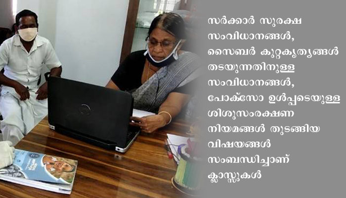 സര്ക്കാര് സുരക്ഷ സംവിധാനങ്ങള്, സൈബര് കുറ്റകൃത്യങ്ങള് തടയുന്നതിനുള്ള സംവിധാനങ്ങള്, പോക്സോ ഉള്പ്പടെയുള്ള ശിശുസംരക്ഷണ നിയമങ്ങള് തുടങ്ങിയ വിഷയങ്ങള് സംബന്ധിച്ചാണ് ക്ലാസ്സുകള്.