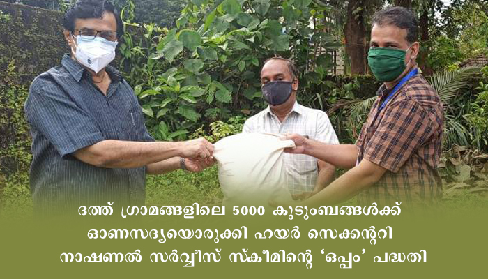 തൃശൂര് : ദത്ത് ഗ്രാമങ്ങളിലെ 5000 കുടുംബങ്ങള്ക്ക് ഓണസദ്യയൊരുക്കി ഹയര് സെക്കന്ററി നാഷണല് സര്വ്വീസ് സ്കീമിന്റെ ഒപ്പം പദ്ധതി. പദ്ധതിയുടെ ജില്ലാതല ഉദ്ഘാടനം വിദ്യാഭ്യാസ വകുപ്പ് മന്ത്രി പ്രൊഫ. സി രവീന്ദ്രനാഥ് നിര്വ്വഹിച്ചു. ജില്ലയിലെ 100 ദത്തുഗ്രാമങ്ങളിലേക്ക് ഓണസദ്യയൊരുക്കുക ലക്ഷ്യമിട്ടാണ് പദ്ധതിയ്ക്ക് തുടക്കം കുറിച്ചത്. 650 രൂപ വിലവരുന്ന 50 പലവ്യജ്ഞന കിറ്റുകള് വീതമാണ് ദത്ത് ഗ്രാമങ്ങളിലെ 5000 കുടുംബങ്ങള്ക്ക് ഇതിന്റെ ഭാഗമായി നല്കുന്നത്. ചടങ്ങില് ഹയര് സെക്കന്ററി ജില്ലാ കോര്ഡിനേറ്റര് വി എം കരീം, നാഷണല് സര്വീസ് കണ്വീനര് എം വി പ്രതീഷ്, പി എ സി അംഗം റസല് ഗോപിനാഥ് എന്നിവര് പങ്കെടുത്തു.