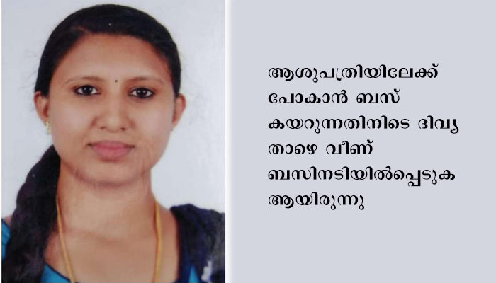 ബുധനാഴ്ച രാവിലെ എട്ടുമണിയോടെ ആയിരുന്നു അപകടം. ആശുപത്രിയിലേക്ക് പോകാന് ബസ് കയറുന്നതിനിടെ ദിവ്യ താഴെ വീണ് ബസിനടിയില്പ്പെടുകയായിരുന്നു. അറയങ്ങാടിലെ പഴയ മഠത്തില് ജോര്ജിന്റെയും അന്നമ്മയുടെയും മകളാണ്. സഹോദരി: നീതു(ബെംഗളൂരു). സംസ്കാരം പിന്നീട്.