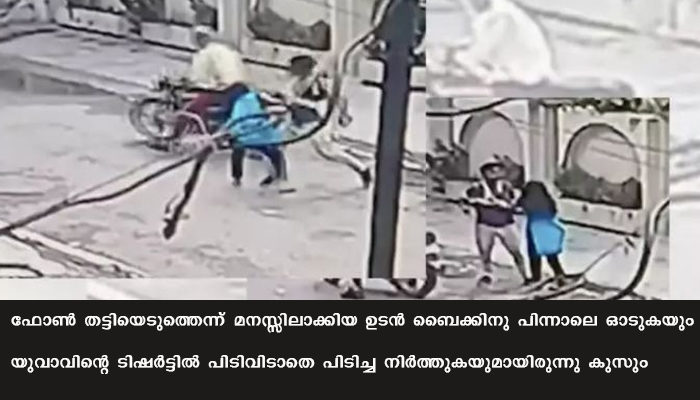 വൈകാതെ സമീപത്തേക്ക് ചിലര് ഓടിയെത്തുകയും അക്രമിയെ പിടിച്ചുവെക്കുന്നതും വീഡിയോയില് കാണാം. താഴെവീണുപോയ ഫോണ് പെണ്കുട്ടി എടുത്തു തിരികെ വരുന്നതും വീഡിയോയിലുണ്ട്.സംഭവത്തേതുടര്ന്ന് പരിക്കേറ്റ കുസുമിനെ സ്ഥലത്തെ സ്വകാര്യ ആശുപത്രിയില് പ്രവേശിപ്പിച്ചു. മോഷ്ടാവിനെ പോലീസിന് കൈമാറുകയും ചെയ്തു. നിരവധി പേരാണ് പെണ്കുട്ടിയുടെ ധീരതയെ അഭിനന്ദിച്ച് രംഗത്തെത്തിയിരിക്കുന്നത്.