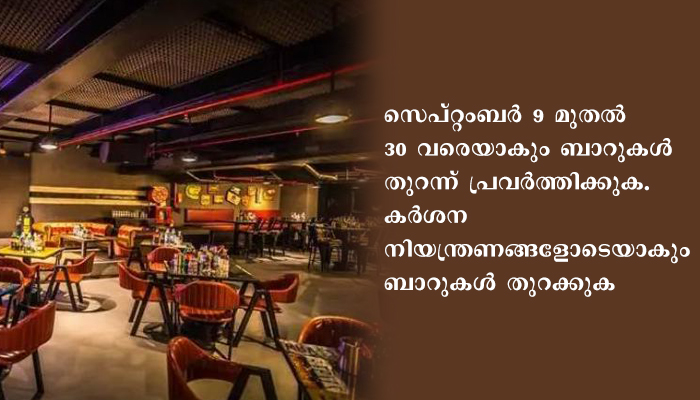 ന്യൂഡൽഹി: കോവിഡിനെ തുടർന്ന് അടച്ചിട്ട ബാറുകൾ പരീക്ഷണാടിസ്ഥാനത്തിൽ തുറക്കാനൊരുങ്ങി ഡൽഹി സർക്കാർ. കണ്ടെയ്ൻമെൻ്റ് സോണുകളിലെ ബാറുകൾ പക്ഷേ അടഞ്ഞു തന്നെ കിടക്കും.സെപ്റ്റംബർ 9 മുതൽ 30 വരെയാകും ബാറുകൾ തുറന്ന് പ്രവർത്തിക്കുക. കർശന നിയന്ത്രണങ്ങളോടെയാകും ബാറുകൾ തുറക്കുക . ഇതിനായി പ്രത്യേക മാർഗനിർദേശവും പുറത്തിറക്കിയിട്ടുണ്ട്. ബാറിനകത്ത് 50 ശതമാനം സീറ്റുകളിൽ മാത്രമേ ആളുകളെ അനുവദിക്കുകയുള്ളൂ. മാസ്കില്ലാത്തവരെ ബാറുകളിൽ പ്രവേശിപ്പിക്കുകയുമില്ല. 4500 ൽ ഏറെ രോഗികളാണ് രാജ്യ തലസ്ഥാനത്ത് ഇതുവരെ കോവിഡ് ബാധിച്ച് മരിച്ചത്