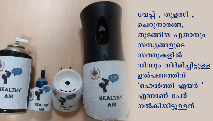 ന്യൂഡൽഹി: കോവിഡ് 19 വ്യാപനം തടയുന്നതിൻ്റെ ഭാഗമായി പുനെയിലെ ഡിഫൻസ് ഇൻസ്റ്റിറ്റ്യൂട്ട് ഓഫ് അഡ്വാൻസ്ഡ് ടെക്നോളജി വികസിപ്പിച്ചെടുത്ത ഹെർബൽ എയർ ഫ്രഷ്നറിൻ്റെ ചിത്രം സോഷ്യൽ മീഡിയയിൽ പങ്കുവച്ച് കേന്ദ്ര പ്രതിരോധ മന്ത്രാലയം. വേപ്പ് , തുളസി , ചെറുനാരങ്ങ, തുടങ്ങിയ ഏതാനും സസ്യങ്ങളുടെ സത്തുകളിൽ നിന്നും ഉണ്ടാക്കിയിട്ടുള്ള ഉൽപന്നത്തിന് ‘ഹെൽത്തി എയർ ‘ എന്നാണ് പേര് നൽകിയിട്ടുള്ളത്.