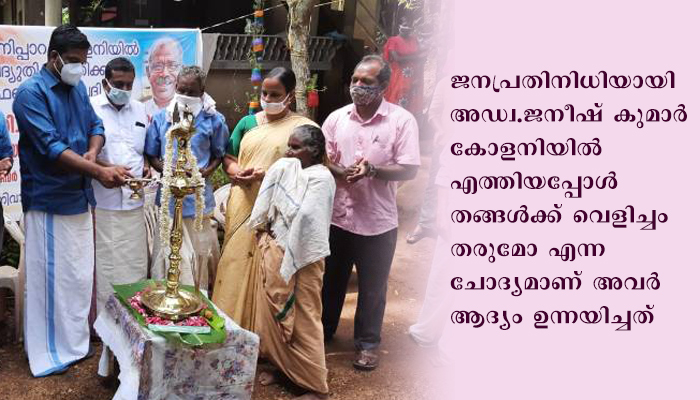 33 കുടുംബങ്ങളാണ് കോളനിയില് ഉള്ളത്. കോളനിയില് വൈദ്യുത വെളിച്ചമെത്തിക്കണമെന്നത് പതിറ്റാണ്ടുകളായി കോളനി നിവാസികള് ഉയര്ത്തിയിരുന്ന ആവശ്യമാണ്. ജനപ്രതിനിധിയായി അഡ്വ.ജനീഷ് കുമാര് കോളനിയില് എത്തിയപ്പോള് തങ്ങള്ക്ക് വെളിച്ചം തരുമോ എന്ന ചോദ്യമാണ് അവര് ആദ്യം ഉന്നയിച്ചത്. എംഎല്എ നല്കിയ ഉറപ്പ് യാഥാര്ഥ്യമായതിന്റെ സന്തോഷത്തിലാണ് നിര്മാണ ഉദ്ഘാടനത്തിനെത്തിയ എംഎല്എയെ മൂപ്പന്റെയും, ഗ്രാമ പഞ്ചായത്തംഗം സിന്ധുവിന്റെയും നേതൃത്വത്തില് സ്വീകരിച്ചത്.
