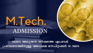 തിരുവനന്തപുരം: കോവിഡ് 19 മായി ബന്ധപ്പെട്ട് മാറ്റിവെച്ചിരുന്ന സംസ്ഥാനത്തെ സർക്കാർ/ എയ്ഡഡ്/ സർക്കാർ നിയന്ത്രിത സ്വാശ്രയ എൻജിനിയറിങ് കോളേജുകളിലേക്കുള്ള 2020-21 അധ്യയന വർഷത്തെ എം.ടെക് പ്രവേശനത്തിനുള്ള അപേക്ഷ സെപ്റ്റംബർ 14 വരെ www.admissions.dtekerala.gov.inwww.dtekerala.gov.in ൽ ഓൺലൈനായി സമർപ്പിക്കാം. വിശദവിവരങ്ങളും പ്രോസ്പെക്ടസും വെബ്സൈറ്റിൽ ലഭിക്കും.