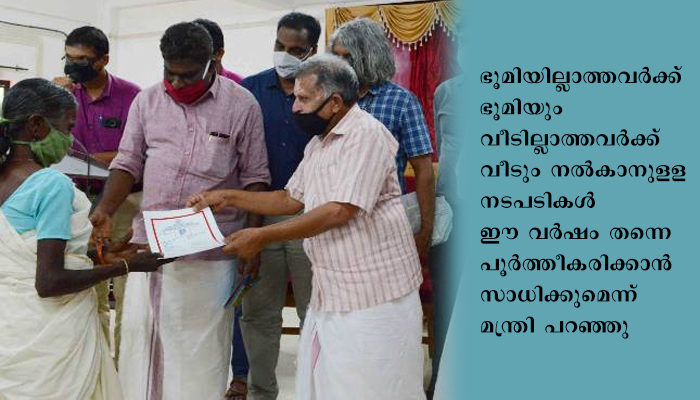 ഭൂരഹിതരില്ലാത്ത കേരളം ലക്ഷ്യം പൂര്‍ത്തിയാക്കും; മന്ത്രി എ. കെ. ബാലന്‍