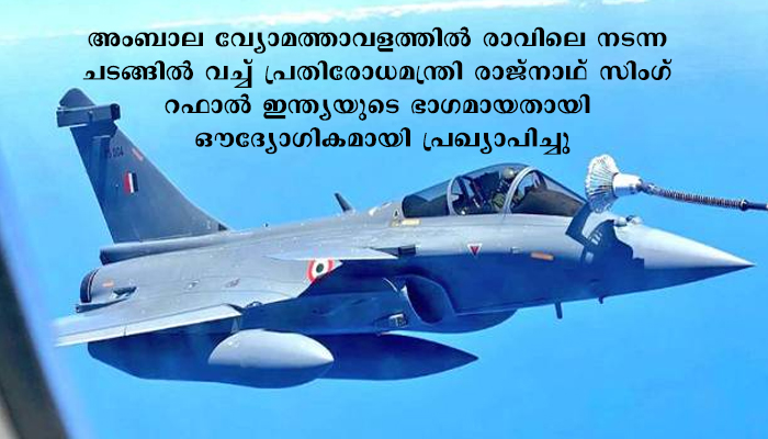 റഫാൽ ഇന്ത്യൻ വ്യോമസേനയുടെ ഭാഗമായി, ചരിത്ര നിമിഷമെന്ന് പ്രതിരോധമന്ത്രി