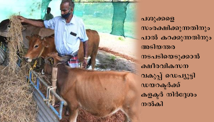 പശുക്കളെ സംരക്ഷിക്കുന്നതിനും  പാല്‍ കറക്കുന്നതിനും അടിയന്തിര നടപടിയെടുക്കാന്‍  ക്ഷീരവികസന വകുപ്പ് ഡെപ്യൂട്ടി ഡയറക്ടര്‍ക്ക്  കളക്ടര്‍ നിര്‍ദ്ദേശം നല്‍കി. ഗ്രാമപഞ്ചായത്തിന്റെയും തിരുവാര്‍പ്പ് ക്ഷീരോദ്പാദക സഹകരണ സംഘത്തിന്റെയും സഹകരണത്തോടെ പശുക്കളെ സുരക്ഷിത കേന്ദ്രങ്ങളിലേക്ക് മാറ്റുന്നതിന് വകുപ്പ് നടപടികള്‍ സ്വീകരിച്ചു.
