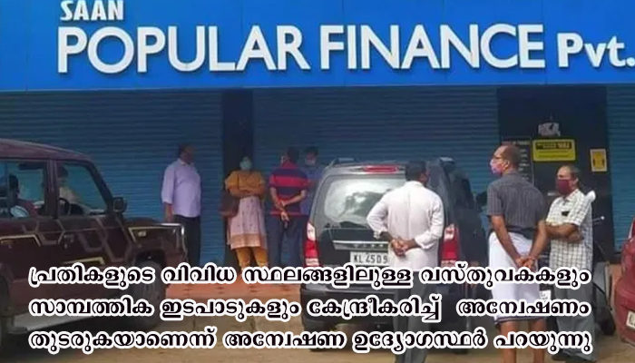 ആന്ധ്രയിലെ മത്സ്യ കയറ്റുമതി സ്ഥാപനം, തമിഴ്നാട്ടിലെ ശീതള പാനീയ വിതരണ ബിസിനസ്, കംമ്പ്യൂട്ടർ ഇറക്കുമതി ബിസിനസ് എന്നിവയിലെ നിക്ഷേപങ്ങളുമാണ് പൊലീസ് അന്വേഷിക്കുന്നത്. പോപ്പുലറിന് ഈ സംസ്ഥാനങ്ങളിൽ വസ്തു ഇടപാടുകൾ ഉണ്ടായിരുന്നത് സംബന്ധിച്ച തെളിവും അന്വേഷിക്കും. പോപ്പുലറിന്റെ ഉടമസ്ഥതയിൽ 22 വസ്തുവകകൾ അന്വേഷണ സംഘം കണ്ടെത്തിയിട്ടുണ്ട്.