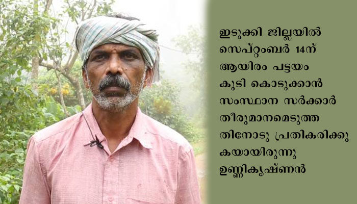 ഇടുക്കി: നൂറ്റാണ്ടിനു മുമ്പ് വനഭൂമിയില് അഭയാര്ഥികളായി വന്നു വിയര്പ്പൊഴുക്കിയ മണ്ണിന്റെ അവകാശത്തിനായി പോരാട്ടം നടത്തി എരിഞ്ഞടങ്ങിയവരുടെ ആത്മാക്കളുറങ്ങുന്ന മണ്ണാണിത്. ജീവിതകാലത്ത് ഒരു പട്ടയത്തിന്റെ പത്രം പോലും കാണാന് അവര്ക്കും ഭാഗ്യമുണ്ടായിട്ടില്ല. ഇപ്പോള് കിട്ടുന്ന ഈ പട്ടയം ഒരു നിധിയാണ്- ഉപ്പുകുന്ന് പൊന്തന്പ്ലാക്കല് ഉണ്ണികൃഷ്ണന് വികാരാധീനനായി പറഞ്ഞു. ഇടുക്കി ജില്ലയില് സെപ്റ്റംബര് 14ന് ആയിരം പട്ടയം കൂടി കൊടുക്കാന് സംസ്ഥാന സര്ക്കാര് തീരുമാനമെടുത്തതിനോടു പ്രതികരിക്കുകയായിരുന്നു ഉണ്ണികൃഷ്ണന്. കരിമണ്ണൂര് സ്പെഷ്യല് താലൂക്ക് ഓഫീസിനു കീഴില് 130 പട്ടയങ്ങളാണ് കൊടുക്കുന്നത്. മൂന്നു നാലുതലമുറ മുമ്പ് ഉപ്പുകുന്ന് മേഖലയില് വന്നു താമസമാക്കിയവരാണ് ഉണ്ണികൃഷ്ണനെപ്പോലുളളവരുടെ കുടുംബങ്ങള്. മഞ്ഞും മഴയും തണുപ്പും ചേര്ന്ന സുന്ദര ഭൂമി. സഞ്ചാരികളുടെ ഹരമായി മാറിക്കൊണ്ടിരിക്കുന്ന മുറങ്ങെട്ടിപ്പാറയും ഇവിടെയാണ്.